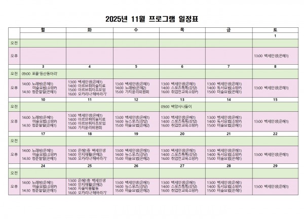 평화를 빕니다. 11월 프로그램일정표입니다.