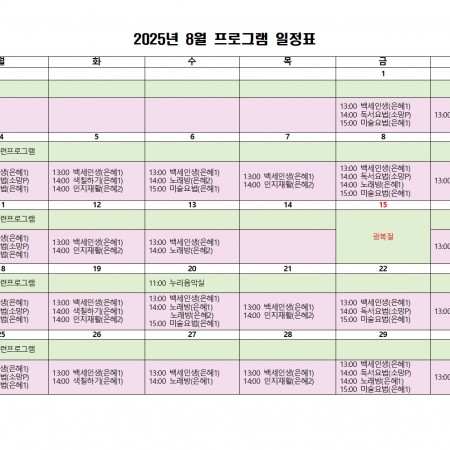 소화누리 소식 소화누리 소식 카테고리 전체알림행사프로그램자원봉사&후원 Total 321건 5 페이지 게시판 검색 261 고령거주인과 함께하는 문화활동 "문화향기를 마시다" 프로그램 진행하고 왔습니다. 소화누리에 거주하고 있는 고령 정신장애인 16분과 함께 지난 2026년 8월 20일, 광주의 갤러리 카페를 방문하여 특별한.. 작성자 지원사업4팀 작성일 08-21 조회 1409 260 8월 프로그램일정표 평화를 빕니다. 8월 프로그램 일정표입니다. .. 작성자 이경도 작성일 07-29 조회 1576 259 한우리와 함께하는 DoDoDo 무더위가 기승을 부리는 7월이지만 한우리 자원봉사자와 함께 나들이 다녀왔어요. 박물관과 미술관 탐방을 마치고 삼복.. 작성자 지원사업1팀 작성일 07-14 조회 1738 258 7월 프로그램일정표 평화를 빕니다. 7월 프로그램일정표입니다. .. 작성자 이경도 작성일 07-02 조회 1763 257 거주인 인권행복위원회 2차 정기회의를 진행하였습니다. 6월 30일, 상반기를 마무리하며 거주인 인권행복위원회 2차 정기회의를 진행하였습니다.이번 정기회의부터 새로운 거주인 위원.. 작성자 홍윤영 작성일 06-30 조회 1774 256 소화누리 40주년 기념 전시 "있는 그대로 빛나는 시간 표현으로 이어지다" 소화누리 40주년을 맞이하여 양림미술관에서 전시를 진행 하였습니다.소화누리는 있는 그대로 가능한 사랑공동체 라는 미션아래&.. 작성자 소화누리 작성일 06-30 조회 1818 255 2025년 6월 프로그램 일정표 평화를 빕니다. 2025년 6월 프로그램일정표입니다. .. 작성자 이경도 작성일 06-24 조회 1878 254 소화누리 설립 40주년 기념 2025년 6월 13일 소화누리 설립 40주년을 맞이하여 기념하는 자리를 마련하였습니다. 1부 본 행사는.. 작성자 고화선 작성일 06-18 조회 1853 253 원외취업자 나들이 죽녹원, 메타프로방스 다녀왔어요 ^^ 오랜만에 일과 생활의 틀에서 벗어나 자연 속에서 힐링 할 수 있는 소중한 시간이었습니다.흐린 날씨 속에서 바람을 맞으며 .. 작성자 지원사업1팀 작성일 06-11 조회 1895 252 응급교육을 진행하였습니다~! 은혜의집 지하 강당에서 응급교육이 실시하였습니다. 이번 교육은 세계건강생활진흥연맹의 전문 강사를 초청하여 진행되었.. 작성자 정민수 작성일 06-09 조회 1896 251 25년 정신장애인 삶의 주체성을 찾는 당사자연구의 지역사회 확산사업“전지적 당사자 시점” 당사자+지원자 교육 당사자연구의 이념과 철학, 적용방법과 지향하는 바에 대해 배우며 의료적 모델 외 대안적 프로그램은 당사자연구에 대.. 작성자 지원사업4팀 작성일 06-07 조회 1830 250 25년 정신장애인 삶의 주체성을 찾는 당사자연구의 지역사회 확산사업“전지적 당사자 시점” 지원자 당사자연구 … *당사자연구의 이념과 철학, 적용방법과 지향하는 바에 대해 배우며 의료적 모델 외 대안적 프로그램인 당사자연구에 .. 작성자 지원사업4팀 작성일 05-23 조회 1885 249 원내작업 참여자 나들이를 우치공원으로 다녀왔어요^^ 아침부터 내리는 비 소식에 나들이를 잠시 망설였지만, 우산을 들고 걷는 동물원의 풍경은 평소와는 또 다른.. 작성자 지원사업1팀 작성일 05-12 조회 1880 248 오색빛깔 바람떡을 만들었어요! 살랑살랑~ 불어오는 봄바람에 기분까지 상괘한 오늘! 소화 가족들은 "오색빛깔 바람떡"을 만들었어요. 오늘.. 작성자 소화누리 작성일 05-07 조회 1931 247 5월 프로그램 일정표 평화를 빕니다. 5월 프로그램 일정표입니다. .. 작성자 이경도 작성일 04-28 조회 1998 처음 1페이지 2페이지 3페이지 4페이지 열린5페이지 6페이지 7페이지 8페이지 9페이지 10페이지 다음 맨끝 검색 검색대상 제목내용제목+내용글쓴이글쓴이(코) 검색어 필수 검색 닫기