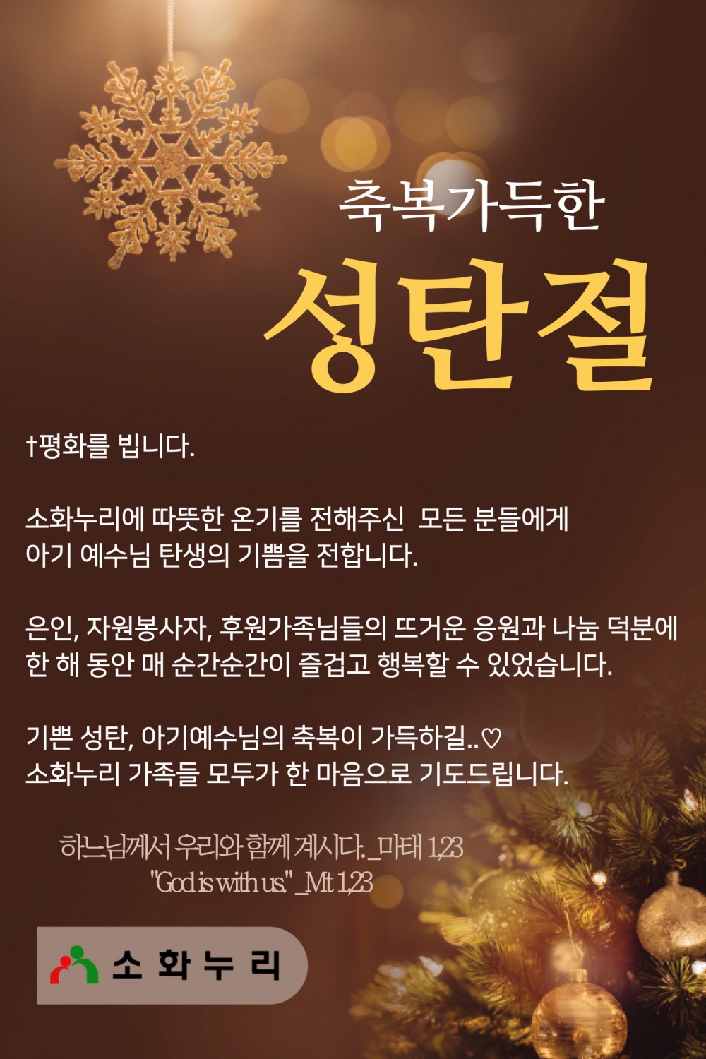 기쁜 성탄을 맞이하여 하느님의 축복과 은총이 충만하기를 기원합니다.