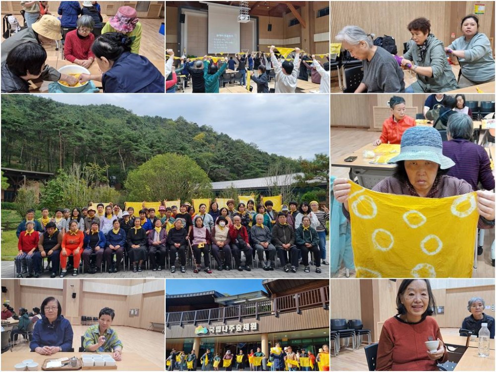 소망의집, 사랑의집 전체 거주인과 함께 국립나주숲체원으로 1박 2일 여행을 다녀왔습니다. 여행을 통해 숲을 체험하고 배우며, 숲이 주는 혜택을 누리는 특별한 시간을 갖을 수 있었습니다. 다 함께 강당에 모여 자연으로 만든 세상에 하나 뿐인 나만의 손수건을 만들었으며 치자 물이 곱게 든 손수건을 이용해서 스트레칭을 하며 자연 속에서 건강을 다스리는 시간을 갖을 수 있었습니다. 저녁 시간 및 아침 시간에 국립나주숲체원 주변을 산책하며 맑은 공기를 마시며 편안하고 여유롭게 힐링하는 시간을 갖을 수 있었습니다. 1박 2일 동안 자연과 함께하는 시간을 통해 일상의 스트레스를 해소할 수 있었고, 즐거움과 행복함을 느낄 수 있는 시간이 되었습니다.