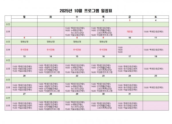 평화를 빕니다. 10월 프로그램일정표입니다.
