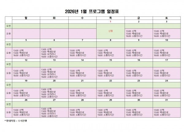 평화를 빕니다. 1월 프로그램 일정표입니다.