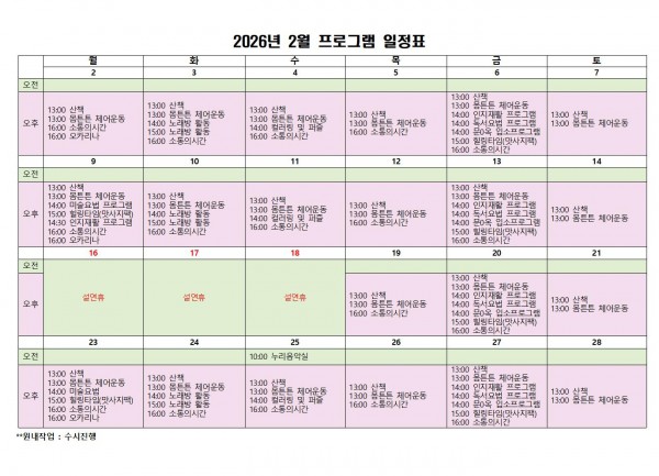 평화를 빕니다. 2월 프로그램 일정표입니다.